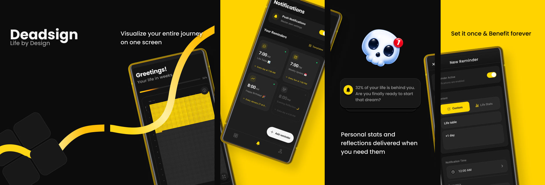 A powerful React Native app that visualizes your life in weeks, helping you gain perspective on time and live more intentionally. Based on life expectancy data, Deadsing transforms mortality awareness into daily motivation.